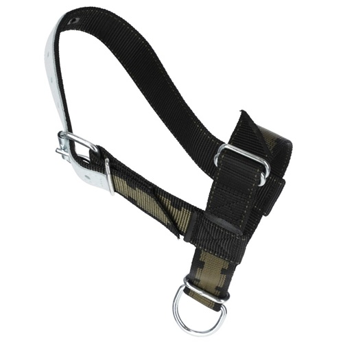 cavezza per vitelli, di ottima qualità, rinforzata in pelle, con fascia regolabile per testa e naso. Robusta ma delicata sulla pelle