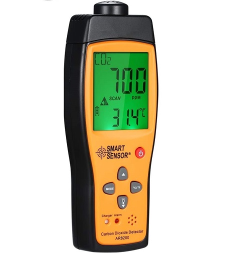 Rilevatore palmare di anidride carbonica CO2 in un’area. Individua una fuga di gas e suona un allarme per gli operatori della zona in cui si verifica la perdita, dando loro la possibilità di lasciare l’area. Ottimo dispositivo di sicurezza.
