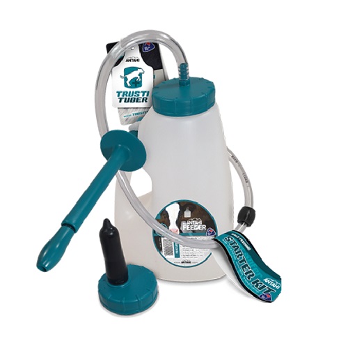 139520---depliant-trusti-biber.pdfprogettato da un veterinario per ridurre notevolmente lo stress del vitello e migliorare l’alimenazione. Attraverso un facile sistema con sonda esofagea, aumenta confort e sicurezza. Previene lividi e lesioni, e semplifica la procedura. La bottiglia Antahi Feeder è progettata con tutte le caratteristiche richieste per garantire la massima facilità d’uso. Il tappo Suckle Up ha una tettarella Peach Teat di elevata qualità per una alimentazione ottimale con il biberon. Il tubo è trasparente, permettendo il controllo del flusso e la pulizia. Inoltre è morbido e flessibile, si inserisce facilmente e il vitello fatica molto meno, consentendo una suzione più veloce ed efficiente. La valvola è potente, per un flusso veloce anche con colostro denso. Permette una riduzione pari a quasi la metà del tempo di alimentazione. Capacità 4 lt, impugnatura ergonomica per una presa perfetta, anello di bloccaggio per un facile posizionamento del tubo flessibile.