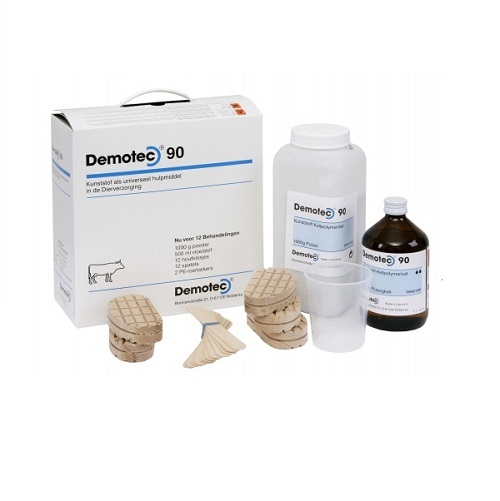 Sistema tradizionale, con polvere in barattolo che mescolata al reagente crea una resina a presa rapida in grado di applicare le solette agli zoccoli degli animali. -Provvisto di spatole e bicchierini per la miscelazione, oltre alla confezione da 1000 gr. di polvere, 500 ml di reagente e 12 solette.