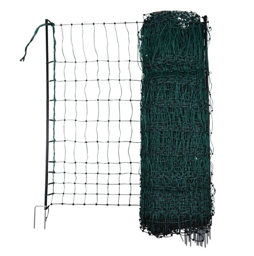 rete per pollame e piccoli animali elettrificabile, con paletti robusti e maglie piccole. I conduttori in acciaio inox resistenti alla corrosione permettono di elettrificare la rete, migliorando la protezione degli animali all’interno e tenendo lontani gli intrusi