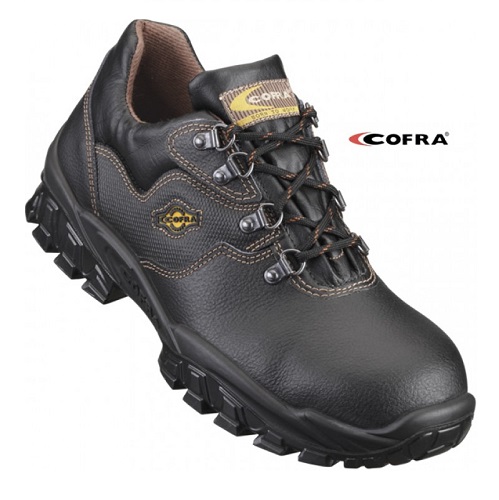 con puntale e lamina acciaio, suola poliuretano bidensità ammortizzante, fodera interna traspirante, tomaia in pelle idrorepellente