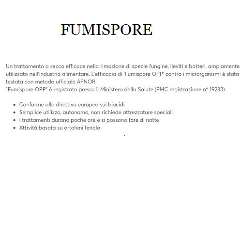 069714-FUMISPORE-GFR.pdfigienizzante fumogeno silos ed ambienti efficiace nella rimozione di spore, funghi, lieviti e batteri. Testato con metodo ufficiale AFNOR.