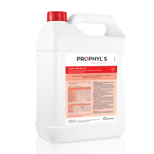 Prophyl-S-depliant.pdfdisinfettande biocida Presidio Medico Chirurgico, innovativo, formulato per la disinfezione di tutte le superfici, attrezzature, veicoli e calzature. Attivo anche in presenza di sostanza organica, è la migliore soluzione per la disinfezione negli allevamenti zootecnici