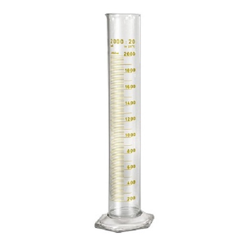 cilindro graduato in vetro borosilicato, classe A, base esagonale, con becco. Disponibile anche con capacità 1000 ml