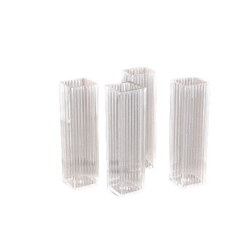 Realizzate in PMMA U.V. grade, posseggono un cammino ottico chiaro e nitido con indicazione della relativa direzione. Sono dotate di pareti lavorate otticamente per assicurare una trasparenza ottimale. Imboccatura quadrata. Confezionate in pratico supporto-contenitore antipolvere, realizzato in PS espanso, contenente 100 cuvette.