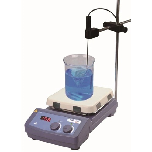 agitatore magnetico digitale, dotato di piastra in vetroceramica, che può raggiungere un riscaldamento fino a 550 °C. Display led con indicazione continua. Completo di supporto, sonde di temperatura e blocchi porta-provette