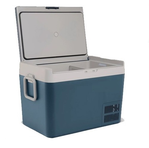 pratico refrigeratore a compressore, per il trasporto delle dosi seminali. Ampio intervallo di temperatura, da +20 °C a – 18 °C. Cavi di alimentazione in dotazione, utilizzabili a 12V, 24V e 230V.